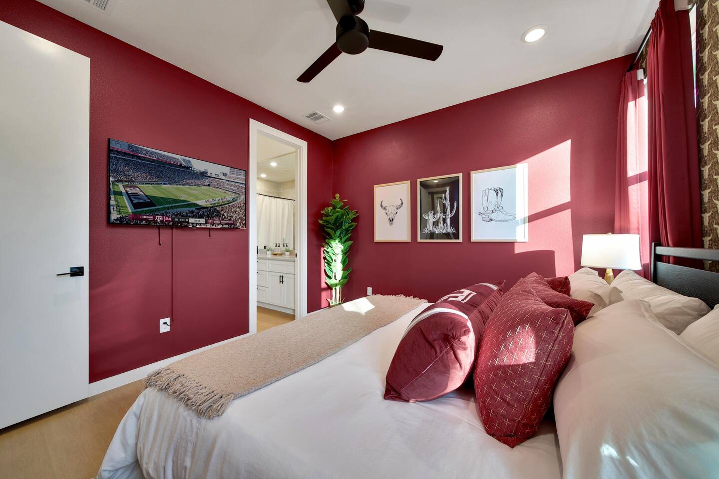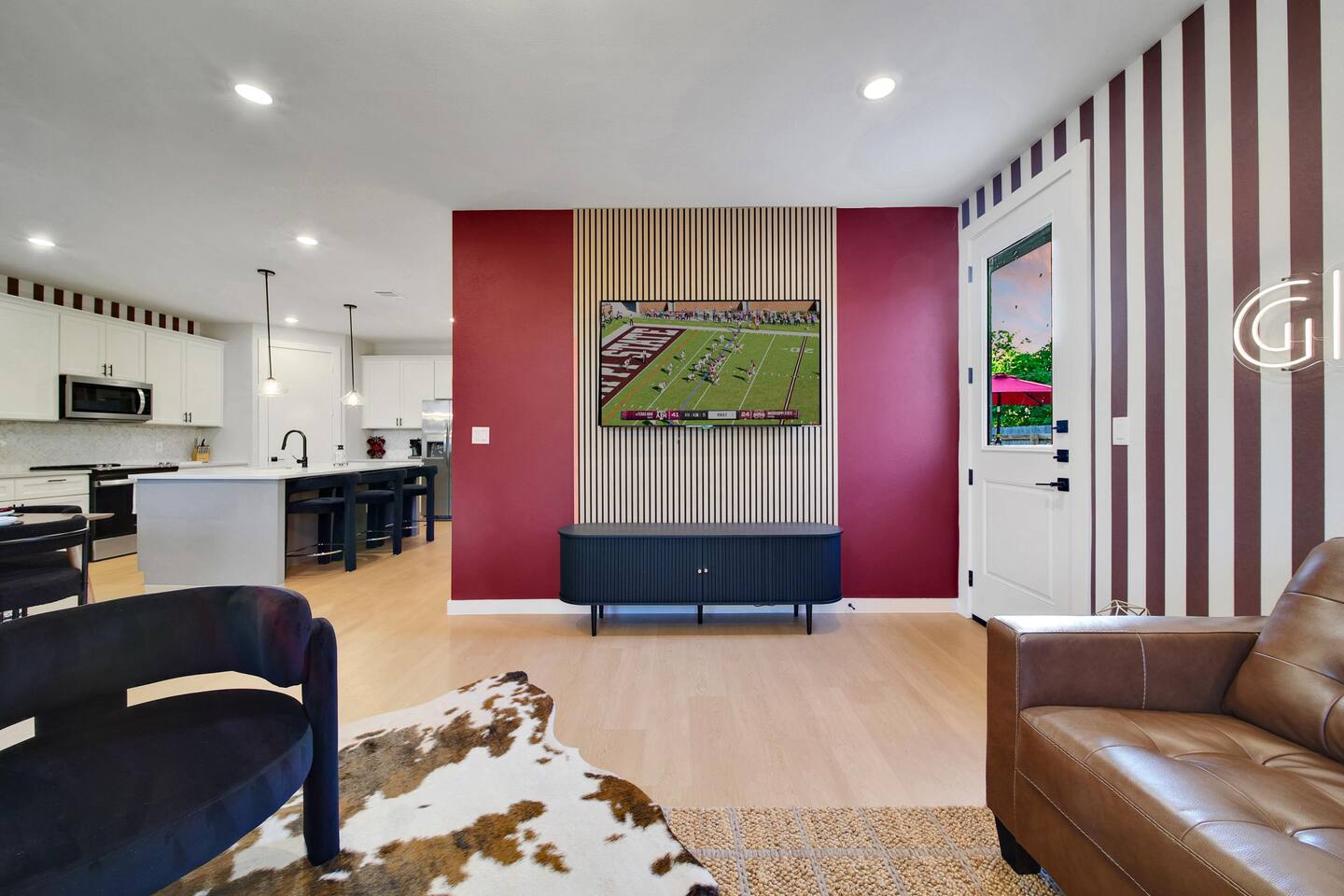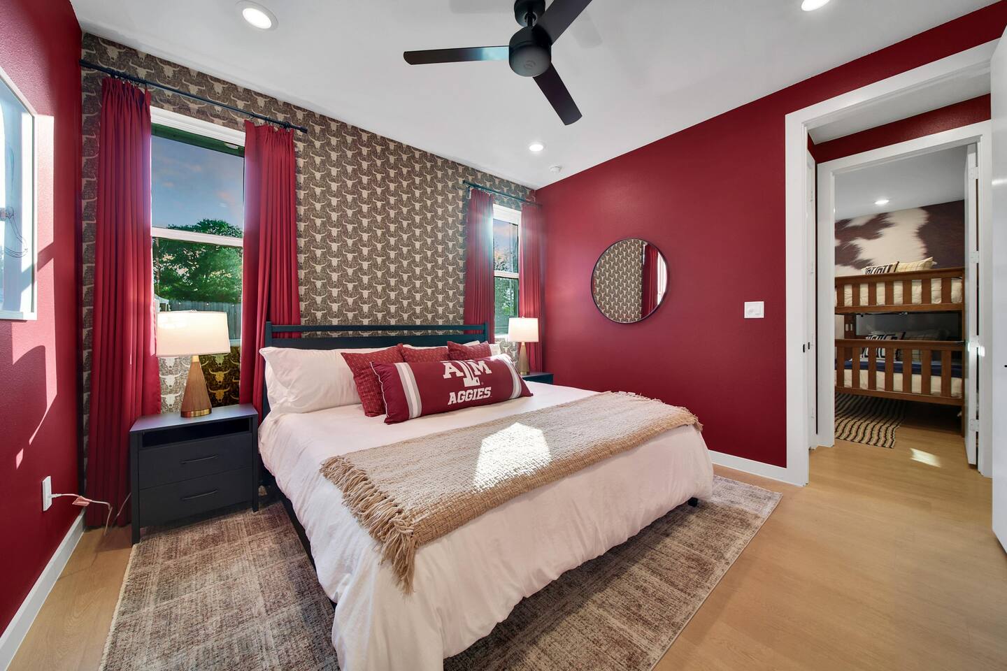 🛏️ Bedrooms & Sleeping Arrangements Bedroom 1: King bed with ensuite bath (tub/shower) + Smart TV Bedroom 2: Full-over-Full bunk + Twin-over-Twin bunk (great for kids & teens) Bedroom 3: King bed with cozy décor & premium linens 🍴 Living & Dining Spacious living room with Smart TV + board games 🎲 Oversized dining table seats 8 comfortably + island seating for 3 Fully stocked kitchen for gameday meals & family dinners 🧺 Extras Laundry/mud room for convenience High-speed WiFi + streaming-ready TVs 📍 Prime Location 9 miles to Kyle Field & Texas A&M 🏈 3 miles to Downtown Bryan 🍷🍴 1 mile to H-E-B (grocery) 🛒 Close to Messina Hof Winery, Lake Bryan, Reed Arena, George Bush Library, Aggieland Safari & more!