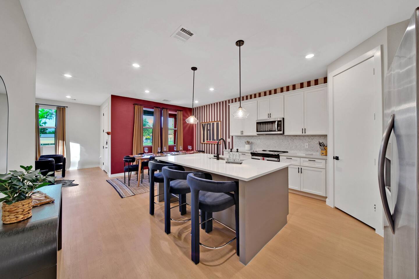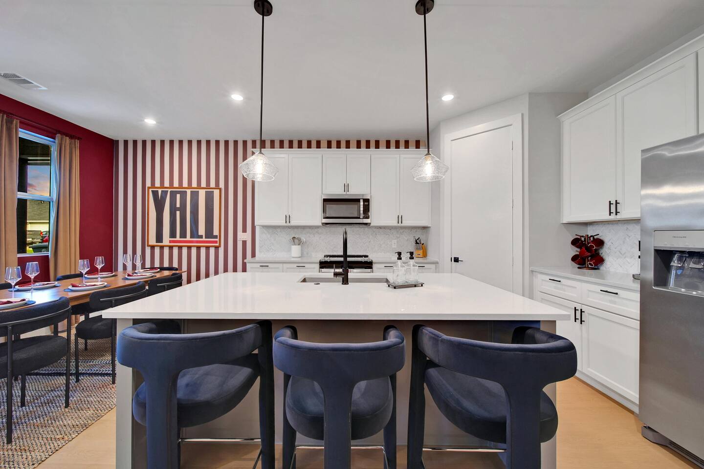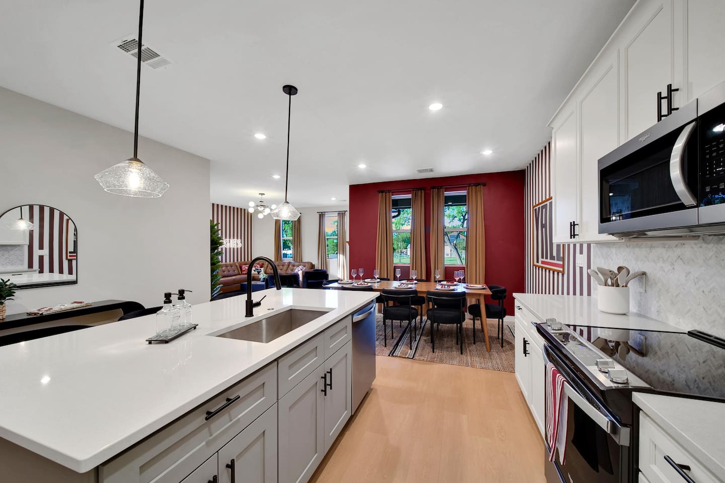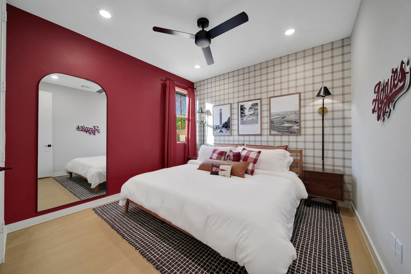 🛏️ Bedrooms & Sleeping Arrangements Bedroom 1: King bed with ensuite bath (tub/shower) + Smart TV Bedroom 2: Full-over-Full bunk + Twin-over-Twin bunk (great for kids & teens) Bedroom 3: King bed with cozy décor & premium linens 🍴 Living & Dining Spacious living room with Smart TV + board games 🎲 Oversized dining table seats 8 comfortably + island seating for 3 Fully stocked kitchen for gameday meals & family dinners 🧺 Extras Laundry/mud room for convenience High-speed WiFi + streaming-ready TVs 📍 Prime Location 9 miles to Kyle Field & Texas A&M 🏈 3 miles to Downtown Bryan 🍷🍴 1 mile to H-E-B (grocery) 🛒 Close to Messina Hof Winery, Lake Bryan, Reed Arena, George Bush Library, Aggieland Safari & more!