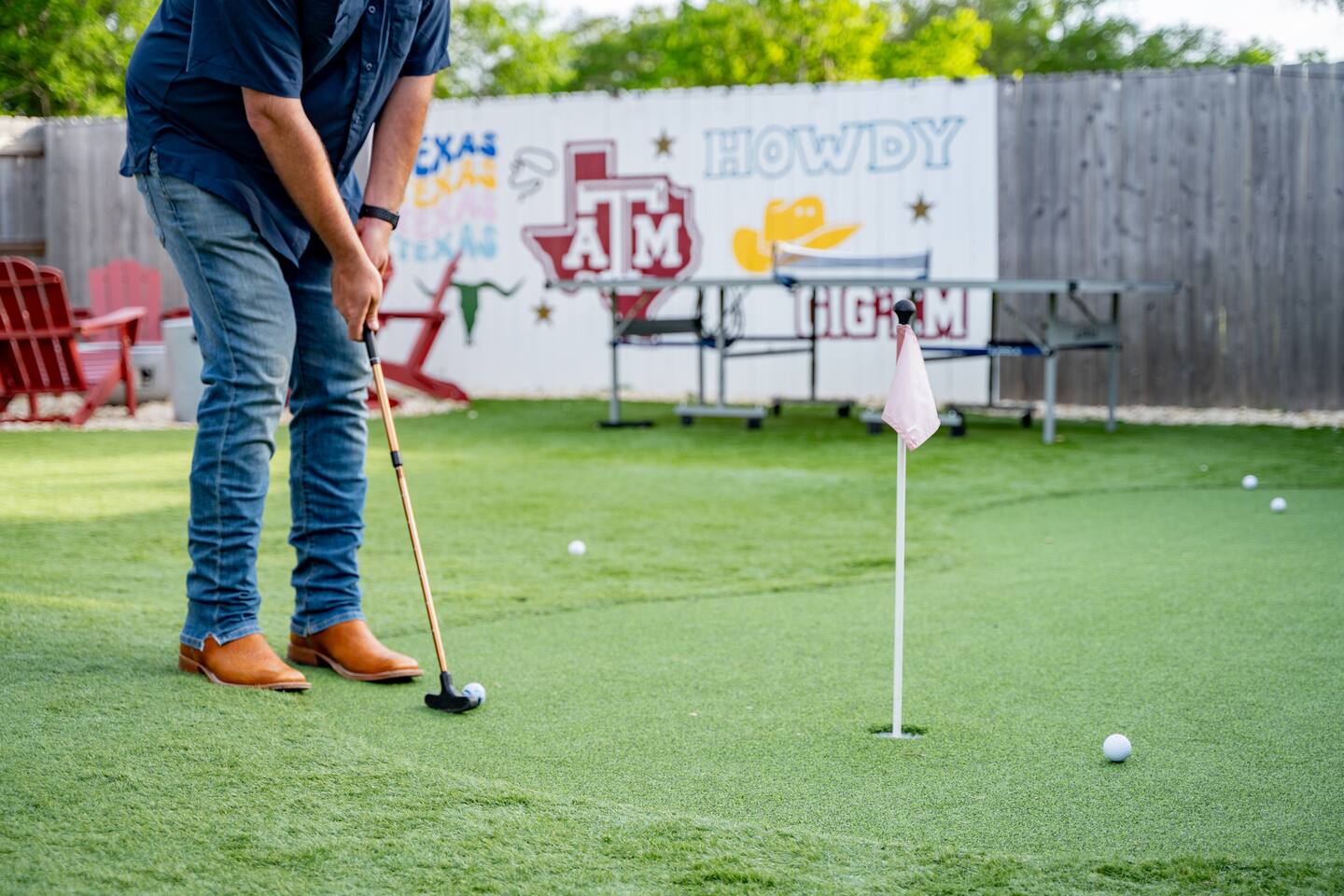 Enjoy hot tub, mini golf, fire pit, and more, near Texas A&M's Kyle Field